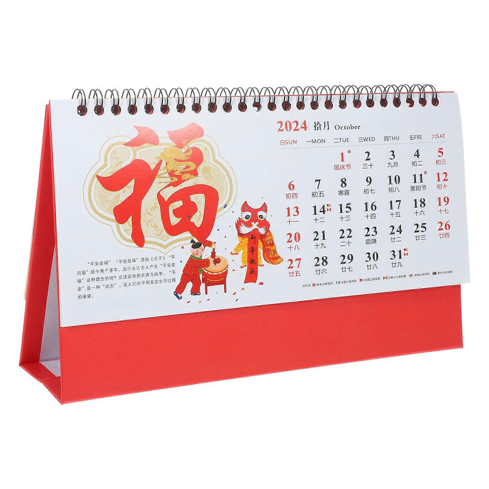 Red Chinese Style Desk Calendar 2024 with Illustrations for Home Use Practical and Vibrant Paper Design Small Size