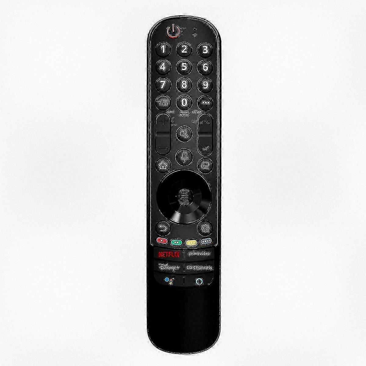 **Rewritten Description:** [Compatible Models] Replacement voice remote for LG 2021 OLED TVs (G1, C1, A1), QNED Mini-LED TVs (QNED99, QNED90), NanoCell TVs (NANO99, NANO90, NANO85, NANO80, NANO75), and UHD TVs (UP80, UP75). [Features] Point, click, and scroll for easy navigation. Includes voice control and quick-access buttons for faster content discovery. [Reliable Performance] Upgraded smart chip with stable signal transmission up to 30 feet. Fully replaces original remote functionality. [Simple Setup] Insert 2*AA batteries (not included), point at TV, and press the Wheel (OK) to auto-pair. Confirmation appears on screen. Color: Black Material: Plastic Package: 1 x TV Remote Note: Slight color variations may occur due to lighting/screen differences. Size tolerance: +/- 1-3cm.