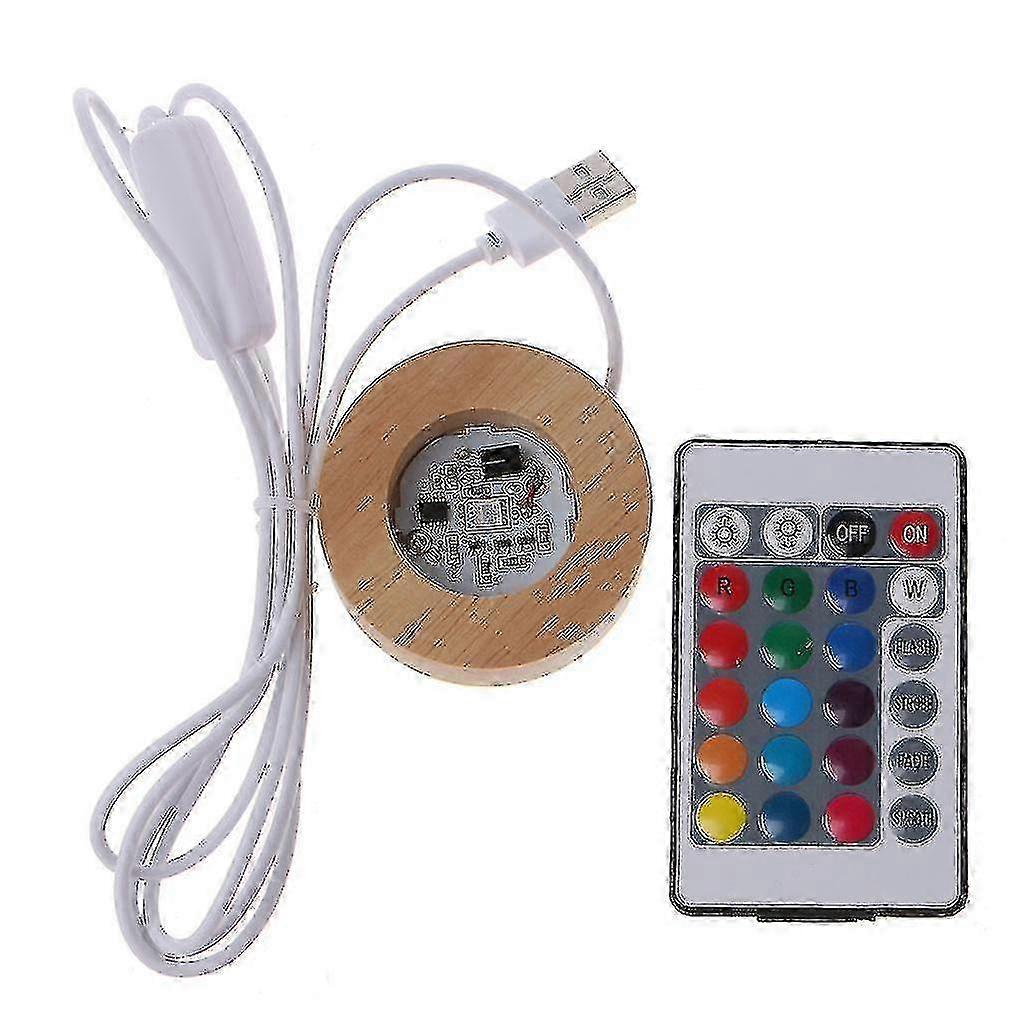 Resin Display Wood Led 12 Colors Rgb Adjustable Light Base With Remote Control--6CM
