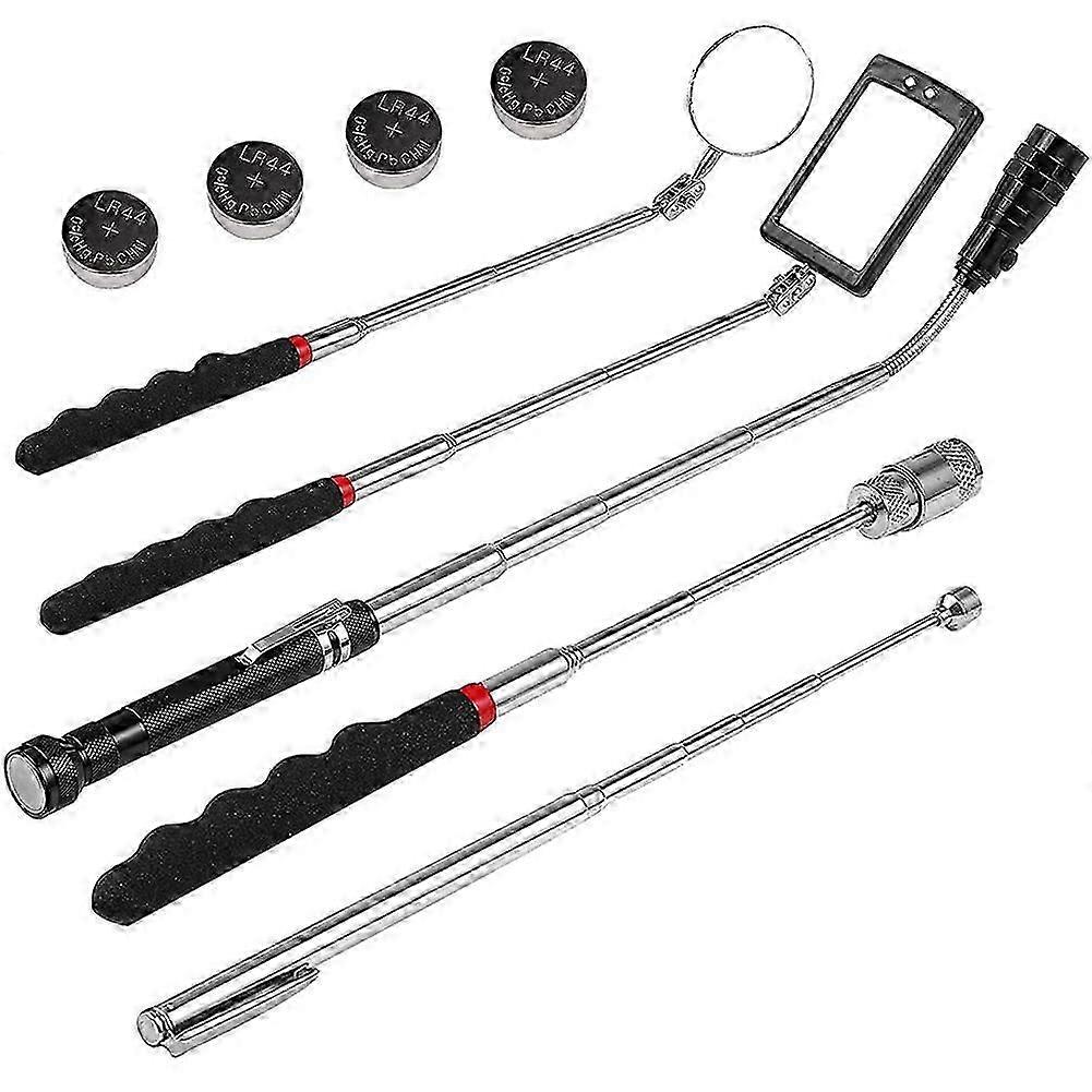 Retractable Magnetic Pickup Kit 360-degree Rotating Adjustable Inspection Mirrors And Retractable Flexible Flashlights