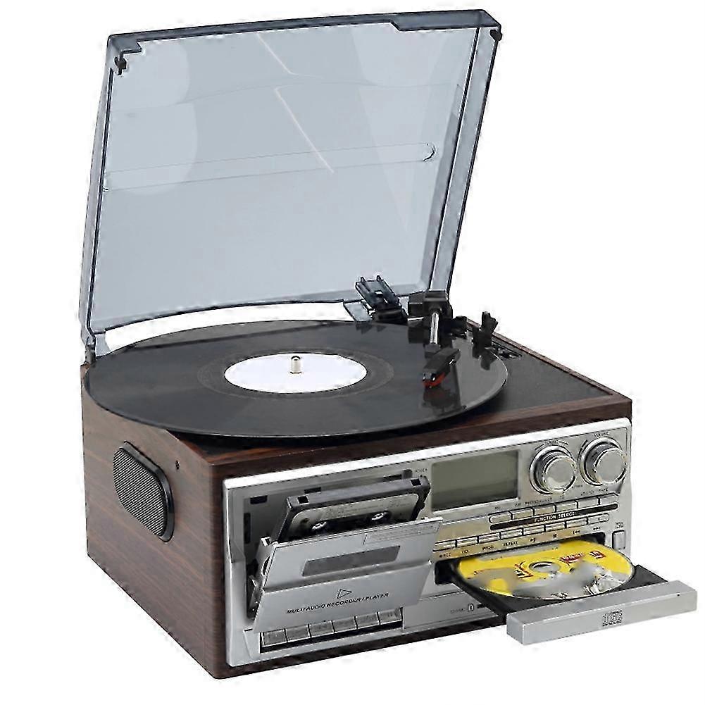 Retro Vinyl Multi Functions Record Player Turntable 3-Speed Phonograph with AM/FM Radio CD/Cassette UK Plug