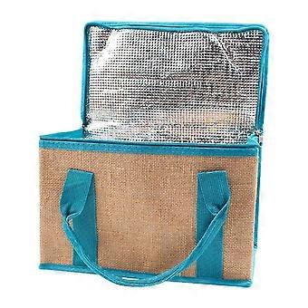 Reusable Insulated Food Delivery Bag With Handle For Grocery Storage And Office Use 11.81 x 7.87 x 7.87 Inch Khaki Blue