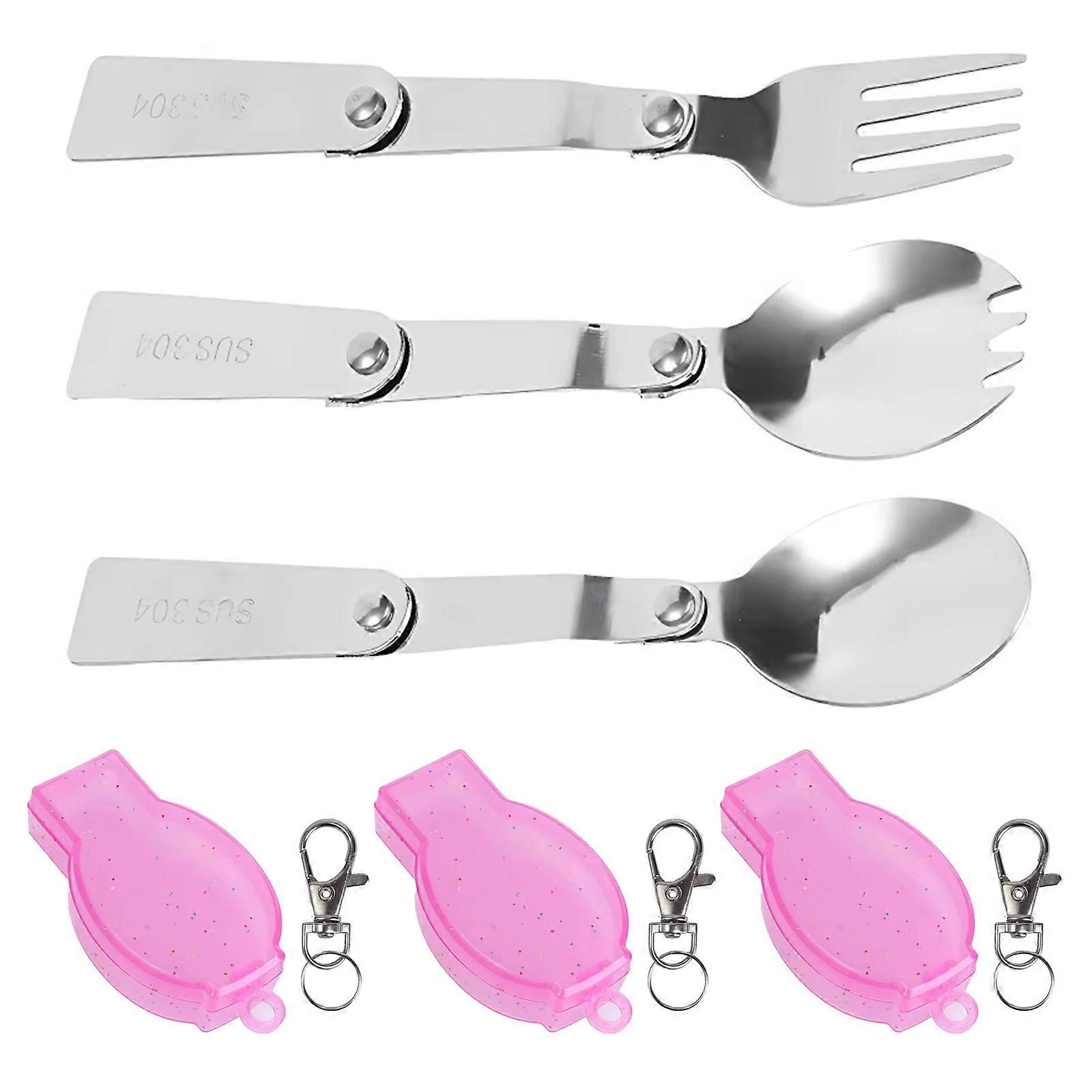 Reusables Camping Tableware Set Folding Stainless Steel Utensils for Traveler and for Picnics Backpacking Multicolor