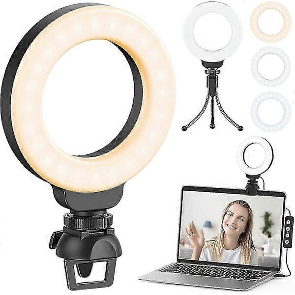 Ring light with stand and clamp, 4'' video conferencing lamp, selfie ring light, adjustable LED ring