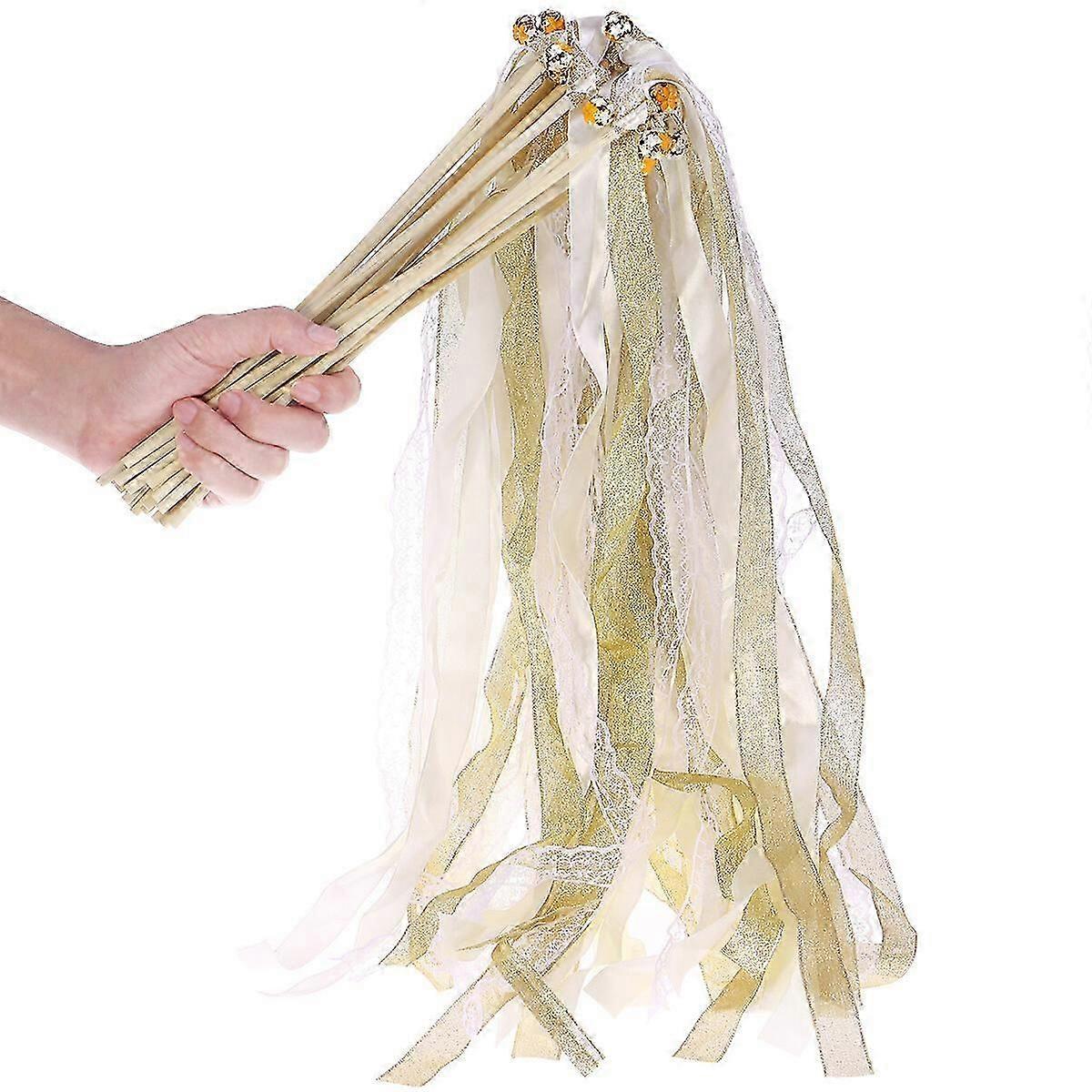 ROSENICE 20PCS Wedding Birthday Party Silk Lace Ribbon with Bells Streamers Wands Fairy Stick (Beige)