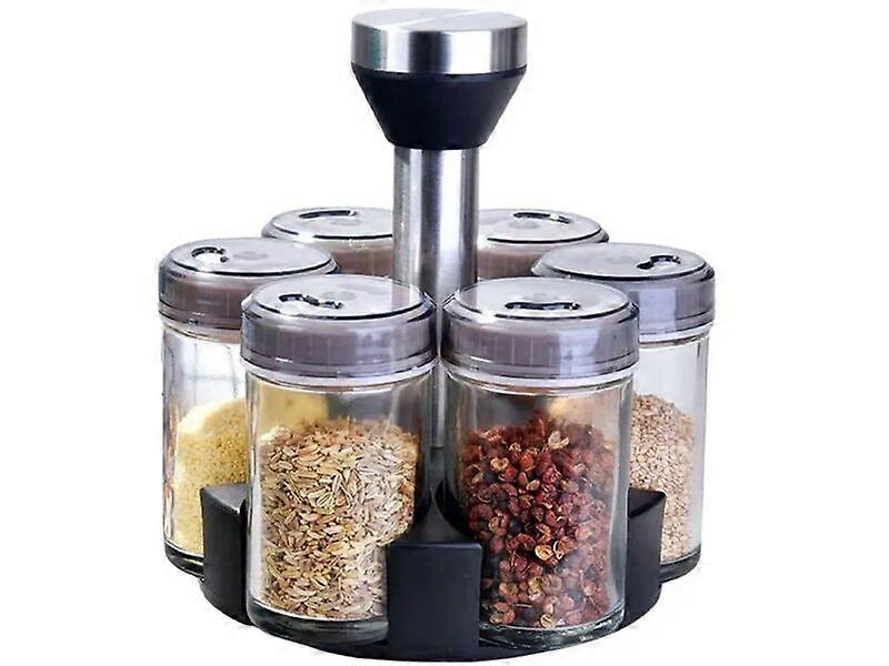 Rotating spice jar set of 6 pieces, made of glass for freshness preservation and easy cleaning