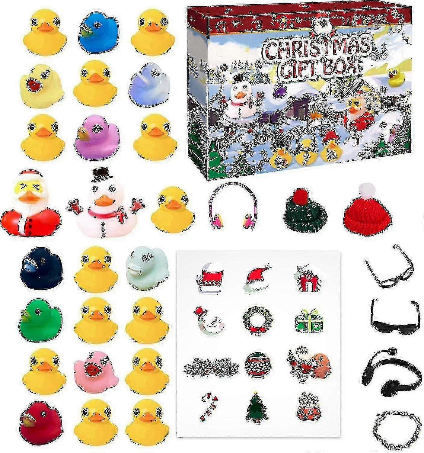 Model Number:1 Colour:12(15ducksand9 hats) Material Type:1 Number of Items:1 Size:1 Rubber Duck Advent Calendar is cute and popular for toddler, which contains 24 different rubber ducks such as snowmen, Santa Claus, musical ducks, and more. Kids Advent Calendar 2022 is perfect for pre-Christmas decorations. This Advent calendar is a fun and festive way for your child to count down the days until Christmas throughout the Advent season. Rubber Duck Advent Calendar is cute and popular for toddler, which contains 24 different rubber ducks such as snowmen, Santa Claus, musical ducks, and more. Suitable for many holidays and occasions, Advent Calendar with 24 Rubber Ducks are well suitable for office, collecting, gifts, jewelry, decor, figurine, and more. 24-Day Countdown Advent Calendar Each date corresponding to a door you can open and take down the novelty rubber duck. It also means that Christmas is just around the corner, full of tension and joy. Beautiful Gifts for Kids Its perfect gifts and decorations for any children"s party. Add fun and ambiance to your party and make great memories for all your guests They make great gifts for birthday parties, baby showers, carnival prizes, classroom rewards, gift bag fillers, and more Specification: Name: Advent Calendar 2023 Material: Rubber Weight: about 210g Duck size: about 5.9x4.9x5.2cm/2.32x1.93x2.05in Box size: about 31x22.5x4.5cm/12.2x8.86x1.77in Packing List: Rubber Ducks x 24/ Rubber Ducks x16and 8 Accessories)/ 12(15ducksand9 hats) Note: Please allow slight tolerances in size due to manual measurement, and lighting in photography may result in a difference in color than in real life. About this item PERFECT CHRISTMAS GIFT: The Advent Calendar is a great surprise gift for kids that will make your child look forward to opening the door every day. The 24 days are digitally recorded, and each date corresponds to a door that you can open to remove the novelty rubber duck. It also means that Christmas is coming, full of tension and joy. Christmas themed rubber ducks: Our set includes 15 rubber ducks and 9 hats, glasses and other accessories, children can DIY freely. These colorful rubber duckies are sure to be a hit with the kids They are sure to get lots of compliments because they are so fun and decorative. Safe Material: The Christmas advent calendar is made of rubber material, children can play with confidence. Can be used as a bath toy for kids. FAMILY ACTIVITIES: A festive way for your kids to count down from Advent to Christmas. Spending Christmas with your child is the best growing gift you can give him. PERFECT FOR KIDS AND ADULTS: This Christmas advent calendar is perfect for girls, boys, adults, teens. Helps reduce anx-iety and improve concentration. The perfect sensory toy and stress relief toy that helps reduce anx-iety and improve focus. See more product details PERFECT CHRISTMAS GIFT: The Advent Calendar is a great surprise gift for kids that will make your child look forward to opening the door every day. The 24 days are digitally recorded, and each date corresponds to a door that you can open to remove the novelty rubber duck. It also means that Christmas is coming, full of tension and joy. Christmas themed rubber ducks: Our set includes 15 rubber ducks and 9 hats, glasses and other accessories, children can DIY freely. These colorful rubber duckies are sure to be a hit with the kids They are sure to get lots of compliments because they are so fun and decorative. Safe Material: The Christmas advent calendar is made of rubber material, children can play with confidence. Can be used as a bath toy for kids. FAMILY ACTIVITIES: A festive way for your kids to count down from Advent to Christmas. Spending Christmas with your child is the best growing gift you can give him. PERFECT FOR KIDS AND ADULTS: This Christmas advent calendar is perfect for girls, boys, adults, teens. Helps reduce anx-iety and improve concentration. The perfect sensory toy and stress relief toy that helps reduce anx-iety and improve focus. Note: Due to the light and screen setting difference, the item's color may be slightly different from the pictures. Please allow slight dimension difference due to different manual measurement.
