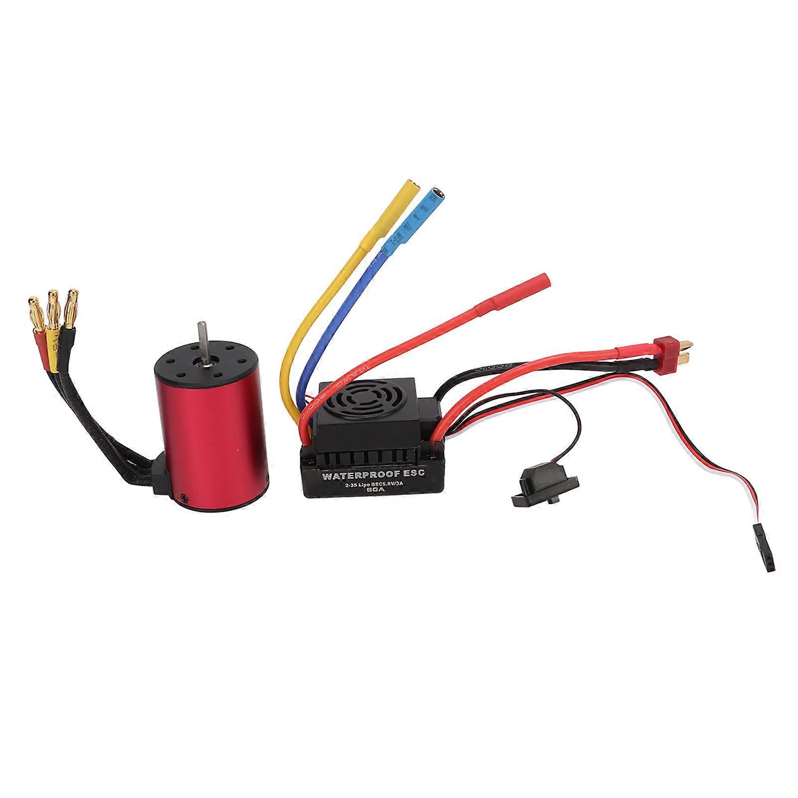 S3650 4300KV Waterproof Brushless Motor + 60A Brushless Motor ESC T-plug Male for 1/10 RC Car Upgrade Parts