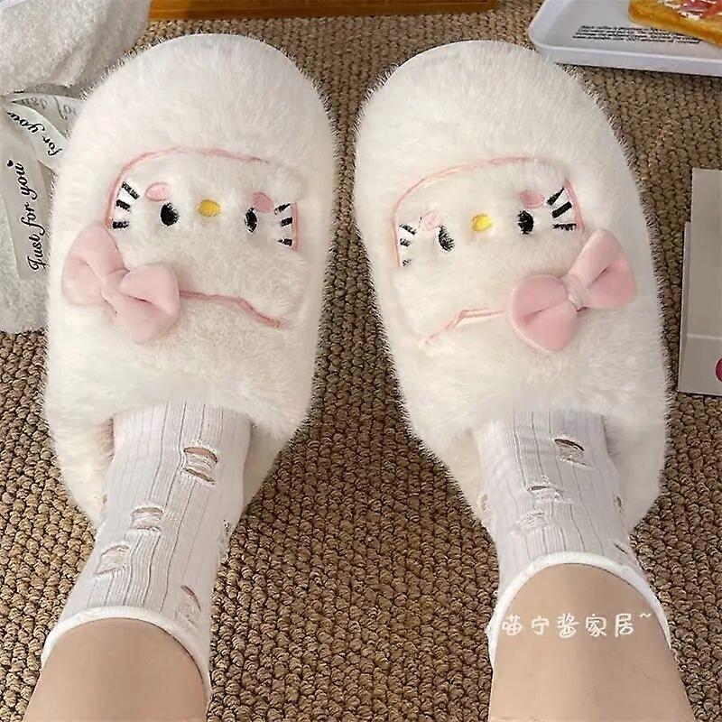 Sanrio Anime Hello Kitty Women's Cotton Slippers Winter Indoor Home Thick-Soled Non-Slip Warm Plush Confinement Shoes Gift