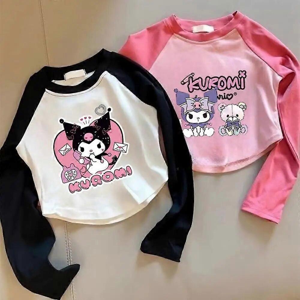 Sanrio Kuromi Girls Pure Cotton High Waist T-Shirt Anime Cartoon Kids Short Style Long Sleeves Spring Autumn Children's Clothing