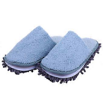 النعال الزرقاء الشنيل الشتوية الدافئة للمنزل مريحة ناعمة الكبار في الأماكن المغلقة حجم يناسب معظم