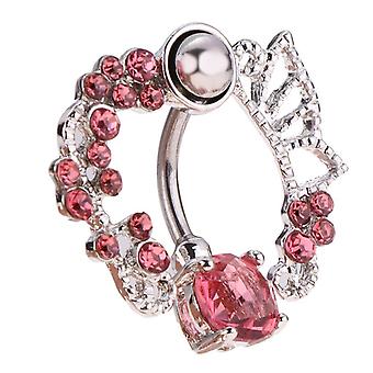 المرأة الوردي الأبيض فراشة تتدلى الفولاذ المقاوم للصدأ بطن زر الدائري الحديد أحجار زركونيا - الوردي الماس