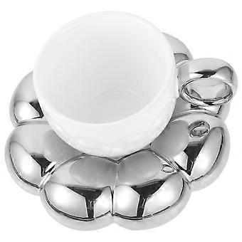 Keraaminen kahvimukisarja kotiin, 3 sarjaa lautasella, hopeanvärinen viimeistely