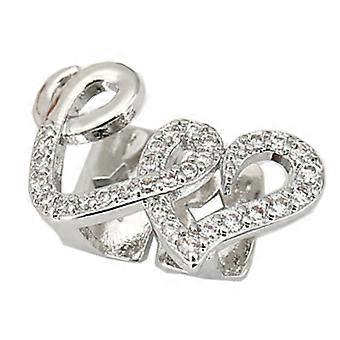 Fashionable Copper Dental Grill With Double Heart Design And Sparkling Zircon Stones For Costume Jewelry Silver