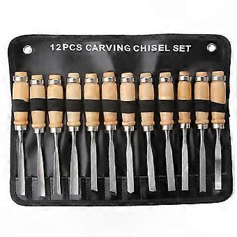 مجموعة أدوات نحت الخشب - طقم إزميل يدوي مكون من 12 قطعة لمشاريع النجارة والجذور