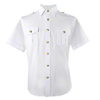Miehet ja naiset Lyhyt/Pitkähihainen Valkoinen Pilot Mekkopaita Kaulus Button Down Univormu Rento Pusero Toppi kahdella taskulla Lyhyet hihat XL