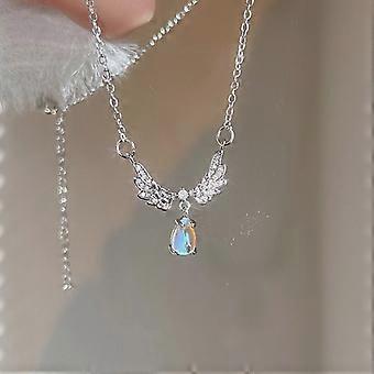 Light Luxury Angel Wings Pendant Necklace Ladies Fashion Exquisite Moonstone Collarbone Necklace Delicate Wedding Jewelry