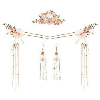 1 مجموعة الصينية هانفو دبابيس الشعر مشط الشعر الأقراط كيت طويلة شرابة اكسسوارات الشعر