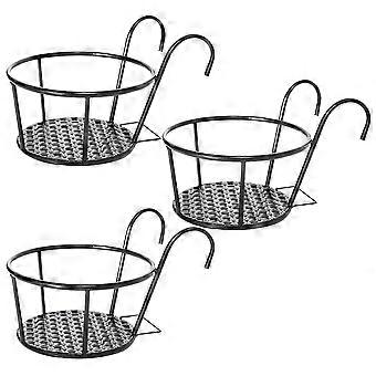 3 قطع الحديد زارع حامل معلقة الدرابزينات زهرية الجرف في الهواء الطلق زهرة الرف للسياج الشرفة (أسود)