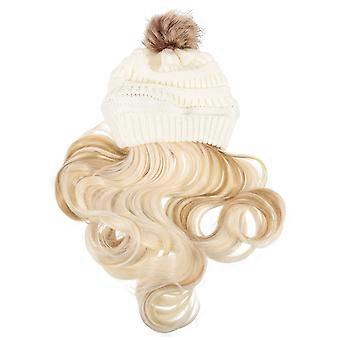 1 مجموعة شعر مستعار طويل الشعر قبعة صغيرة مع شعر مرفق للنساء طويل متموج شعر مستعار قبعة دافئة