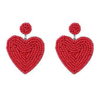 Sydänkorvakorut 1 pari punaisia ​​riisihelmiä pitkät korvakorut lapsille lapsiystävällisellä mukavuuslahjalla