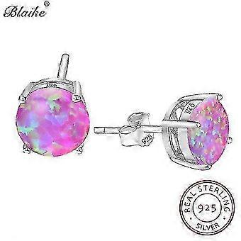 Blaike Real 100٪ 925 الفضة الاسترليني الأبيض / الأزرق / الأخضر أقراط أوبال مسمار للنساء صوفية قوس قزح الزركون أقراط المجوهرات الجميلة