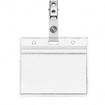 10 Pack Clear Plastic ID Card Holders with Metal Crocodile Clips for Name Tags and Badges