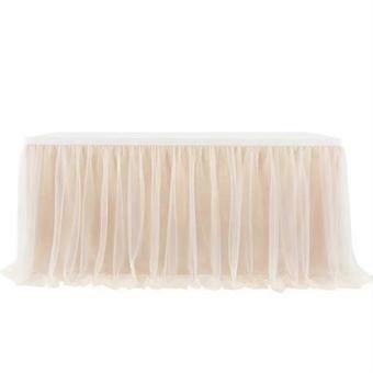وصف منتج مصقول وجذاب بناء على مدخلاتك: ** تنورة طاولة شاش أنيقة مع ترتر - طاولة زفاف وحفلات أنيقة