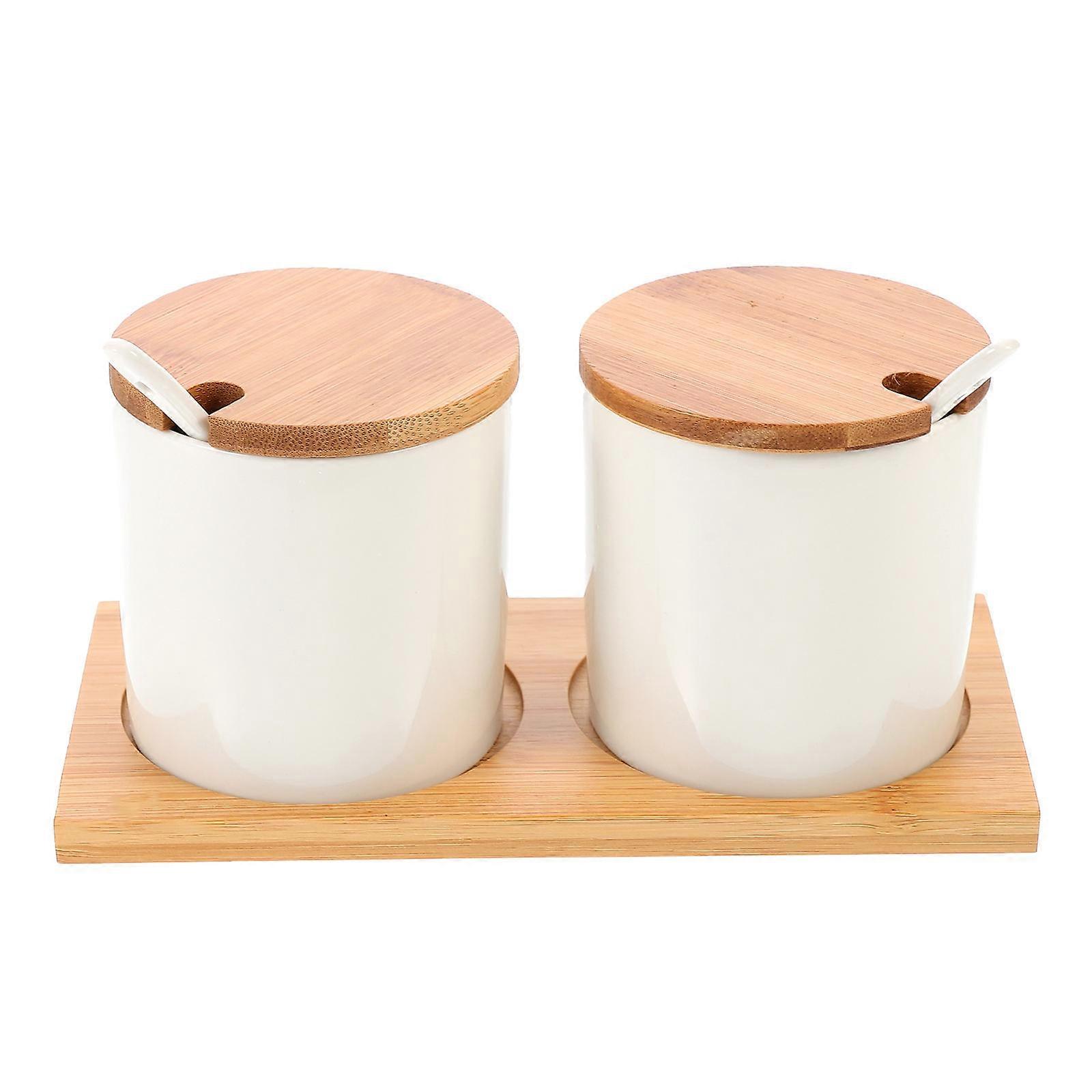 Seasoning Storage Container Ceramic White Square Moisture-proof Kitchen Tools 8.5X7.5CM 1 Set