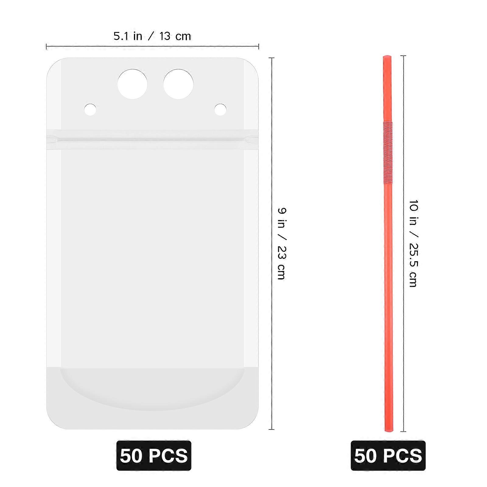 Package contains 50pcs and 50pcs colorful , these drink bags are great for holding hot and cold beverage like water, coffee, tea, lemonade, juice, iced tea, energy drink and more. They can be used for birthday parties, festivals, camping, beach gatherings, or even wedding receptions and baby showers! Features - Brand: BESTONZON. - Color: As shown. - Material: OPP, , CPP. - Size: 23.00X13.00X0.50cm/9.04X5.11X0.20in - Pouch Capacity: 500ML. - The 50pcs drink bags are clear, which means you can see your drink at any time, and they come to you complete with colorful . - Two large holes in the mouth of the bag so the bags can be hung or carried, and two small holes for you to place your . - Perfect for containing coffee, tea, energy drinks, , , and cocktails - The reclosable zip ensures that there is no leaking accidents, while the stand-up gusset bottom allows you to place your drink on a table or a stand. - Our bags are reclosable for holding drinks, candies, coffee, biscuits and so on. Package list: BESTONZON Drink Pouch BESTONZON