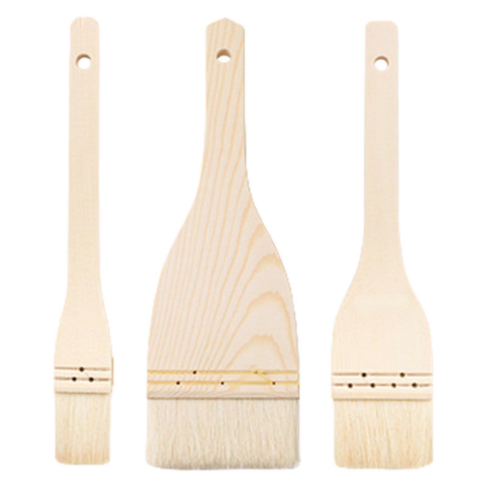 Set Of 3 Professional Baking Brush Soft Fiber Bristles For Cakes Breads And Grilling Soft Bristles Wooden Handle Multicolor