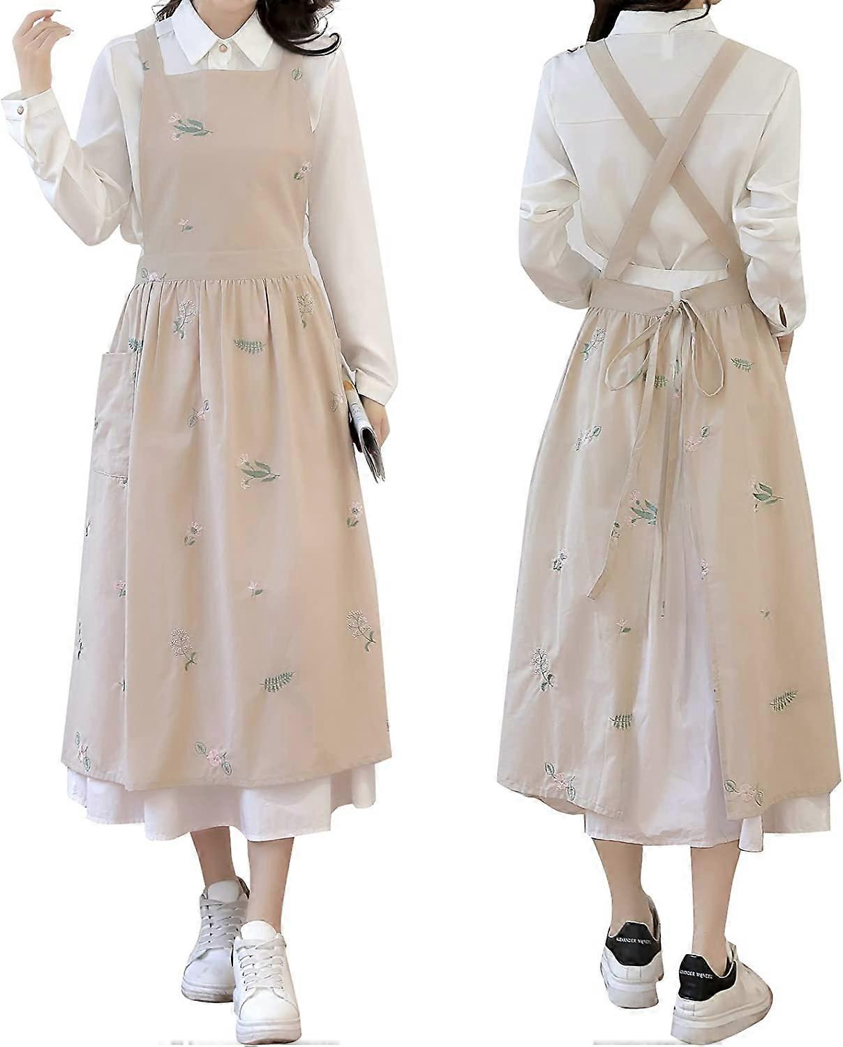 SHUAIGE Pinafore Apron DressJapanese Cotton Linen Cross Back Apron for Women with PocketsCooking Apron,Gardening Apron