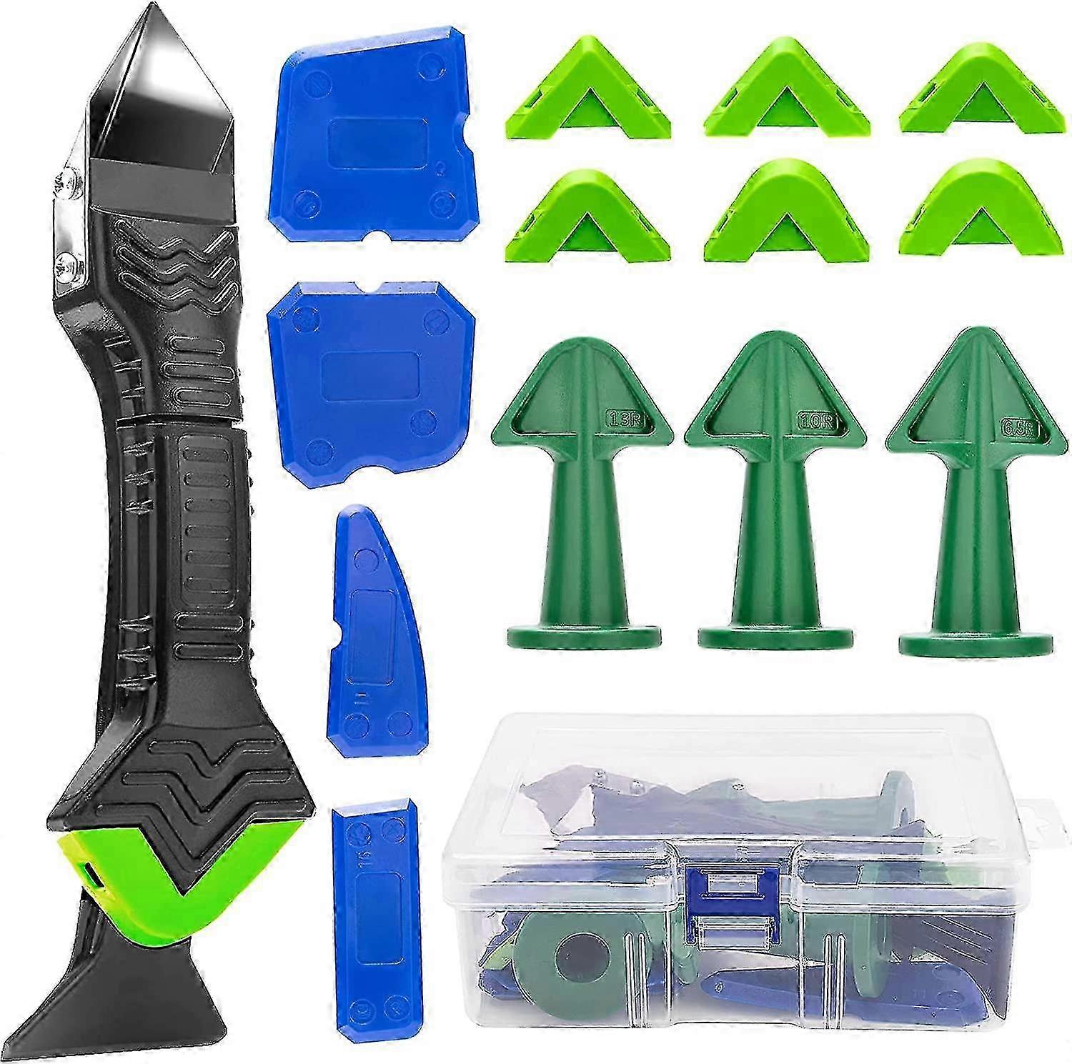 Caulking Tool - Kit of 14 silicone sealants, contains 1 silicone caulking tool 3 in 1 with stainless steel tip and 5 interchangeable pads, 3 green sealing nozzles, 4 blue silicone spatulas, 1 box of storage. Different shapes of putty finishing tools have different sizes on each edge, which can meet your different working needs. 3 in 1 Silicone Hair Straightener - Our 3 in 1 silicone sealant removal tool consists of a stainless steel head and a silicone pad to easily remove stubborn old and new glue anywhere. The silicone spatula can effectively smooth uneven surfaces and keep the surface smooth. It is a great tool for removing sealant and smoothing. Multifunctional silicone squeegee - The silicone sealant finishing tool provides more than 10 different edges, which can not only repair gaps and clean the remains of glue, but also fill in the putty. The silicone nozzle acts as a suction tip for the silicone syringe, allowing you to waste corners without wasting sealant, silicone or mortar. High quality material - The silicone sealant for grout scraper is made of soft and durable ABS plastic, which is harmless to the human body and will not hurt your hands or scratch hard surfaces. They are reusable and easy to clean with a damp cloth or water, they will come in handy next time. WIDE APPLICATION - Grout scraper for most types of grout. The silicone sealant finishing kit can be used for window and gutter sealants such as silicone sealants, resins, etc. Commonly used to seal seams in bathrooms, kitchens, floors, doors and windows.