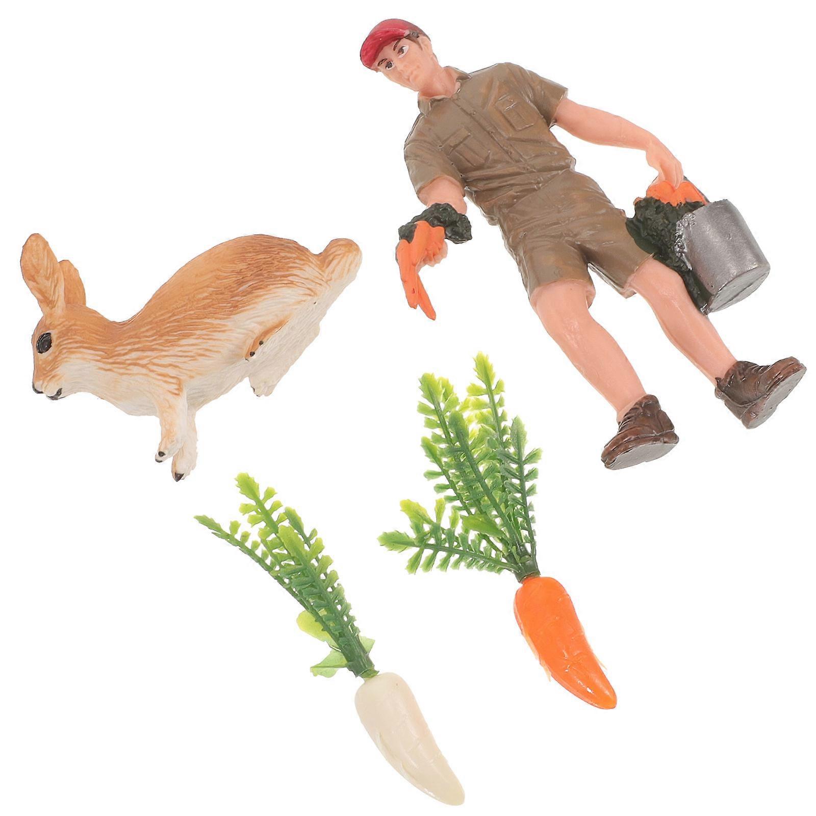 Simulation Rabbit Figurine Model for Farm Decoration with 4Sets
