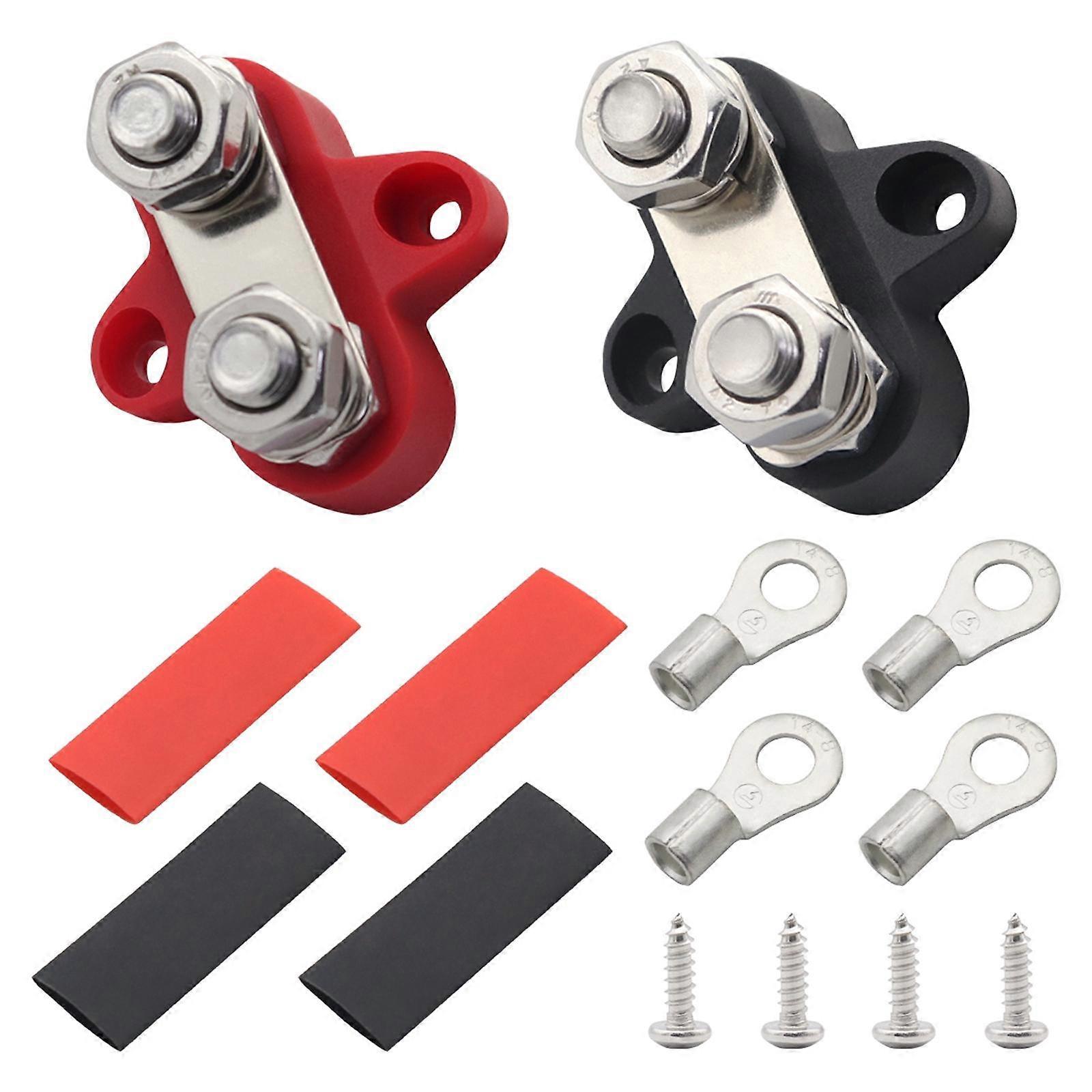 Description: Battery Post Dual Stud Junction Box: The package contains 1 Terminal Distribution Block, 1 Black Battery Terminal Distribution Block, 4 Screws, 2 reds Heat , 2 , 4 Terminals Function: Allows termination one or connects heavy duty cables, very useful for customizing or relocating battery and wires. Heavy Duty: Nylon construction with stainless steel stud for strength and durability. Applycation: For circuit projects such as automobiles,, motorcycles,RVs,ships,etc. Installation Method: panel surface install with screw mounting holes for orientation installation. Specification: Optional Stud Size: 2 x M6 (1/4inch) or 2 x M8 (5/16inch) Maximum working voltage: DC 48V Maximum working current: 80A Material: nylon stainless steel Package Includes: 1 Piece powers Junction Post Block 1 Piece powers Junction Post Block 4 Pieces Screws 2 Pieces Reds Heat 2 Pieces Black Heats 4 Pieces Terminals Note: Please allow slightly errors due to manual measurement and different monitors.