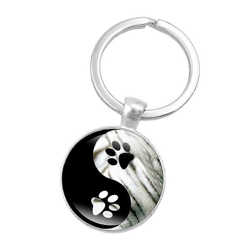 Sinknap Creative Yin Yang Tai Chi Glass Cabochon Pendant Keychain Key Ring Holder Gift