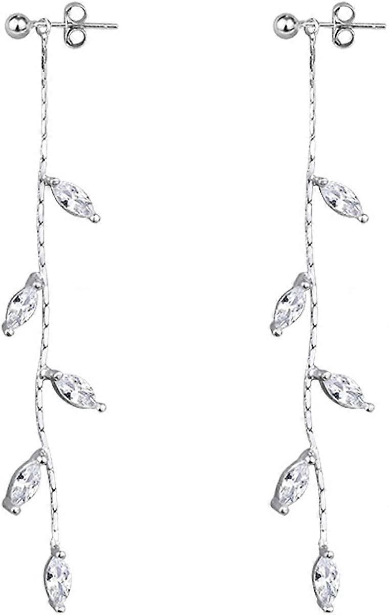 SLUYNZ 925 Sterling Silver Dangle Earrings Chain for Women Leaf Earrings Elegant Drop Earrings Leaves Threader Earrings Mother's Day Gift (A-Silver)