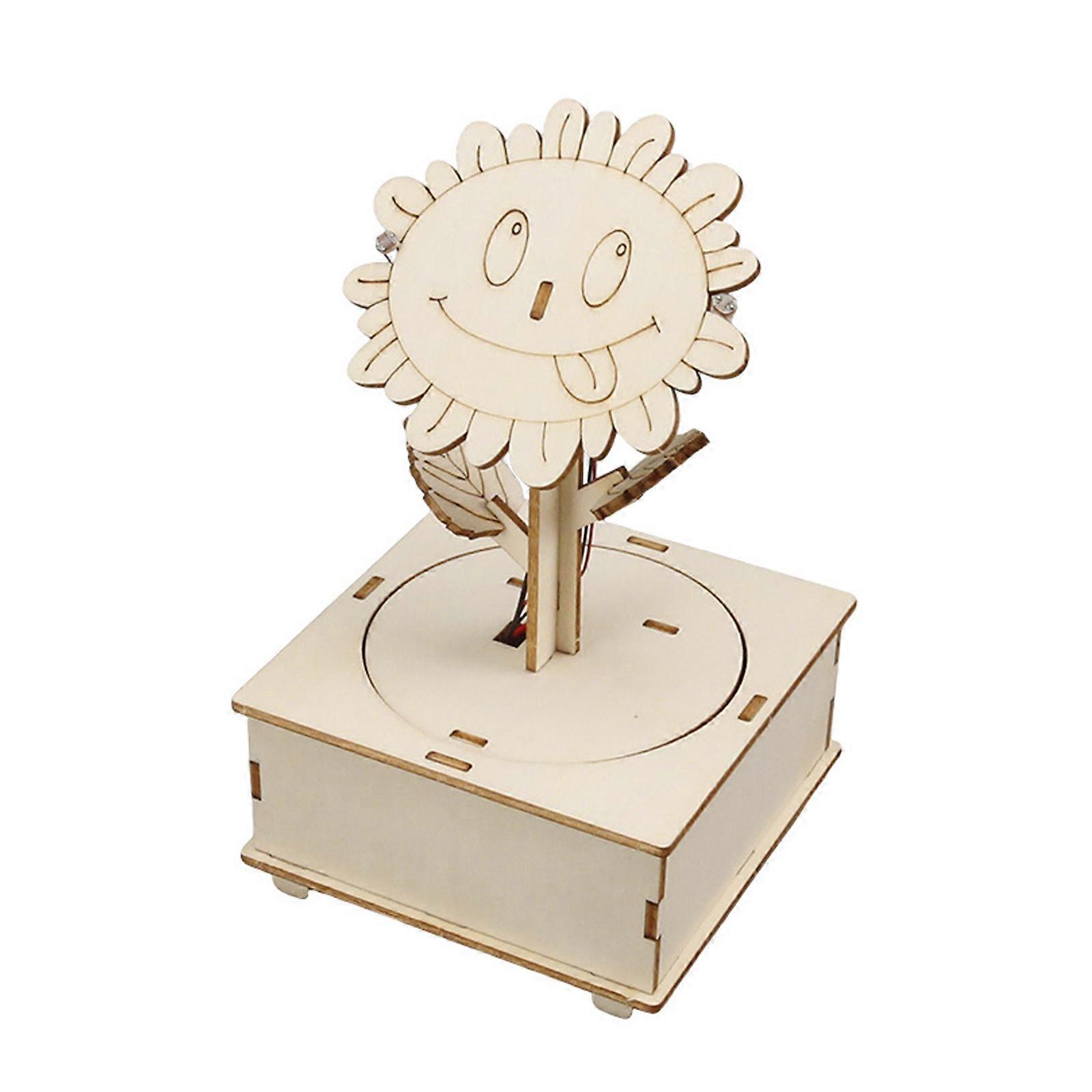 Solar Powered Sunflower Desk Ornament DIY Building Set Physics Teaching Interactive Tool With Natural Wood Materials Multicolor