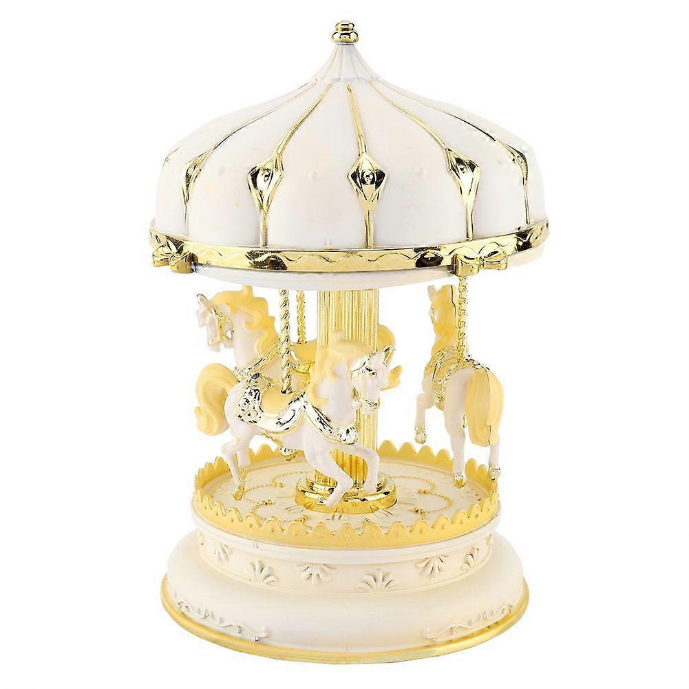 SQCLV Plastic Romantic Three Horses Carousel Music Box Birthday Kids Anniversary Gift (Gold)