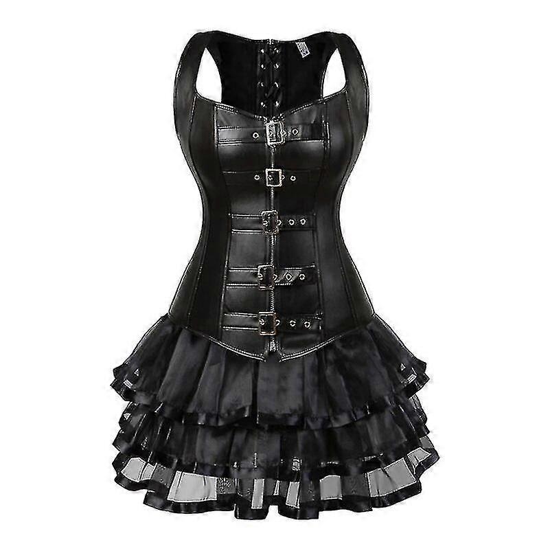 Steampunk Lace Up Back Waist Trainer Body Shaper Buckle Bustier Overbust Corset Dress Faux Leather Corsets Mini Skirt