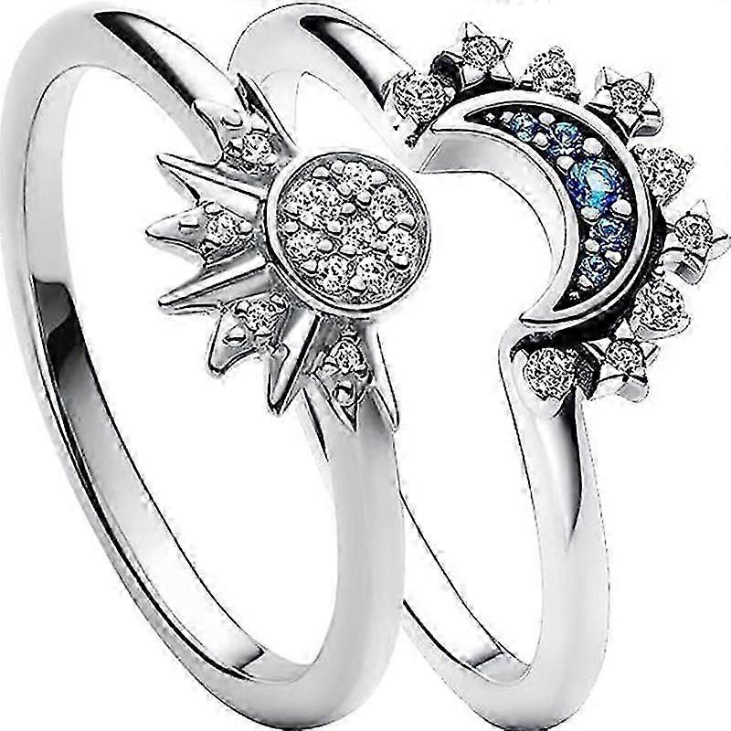 Sun and Moon Ring Set, Sparkling Sun Moon Ring for Women KB