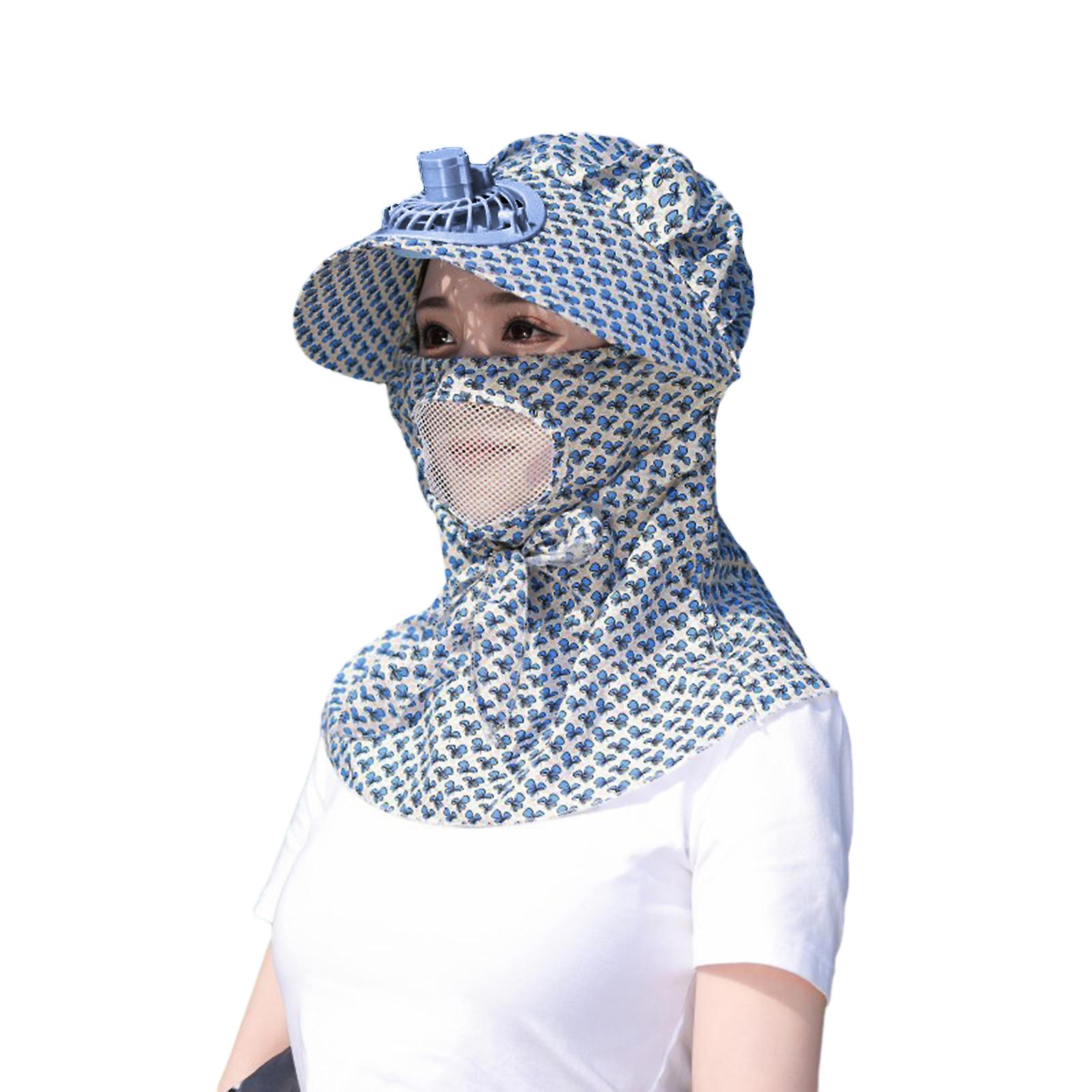 Fan Sunhat Strong Wind Cooling Sunshade Wide Brim Hollow Out Mesh Sun Protection Decorative Neck Protection Outdoor Fan Cap Headwear