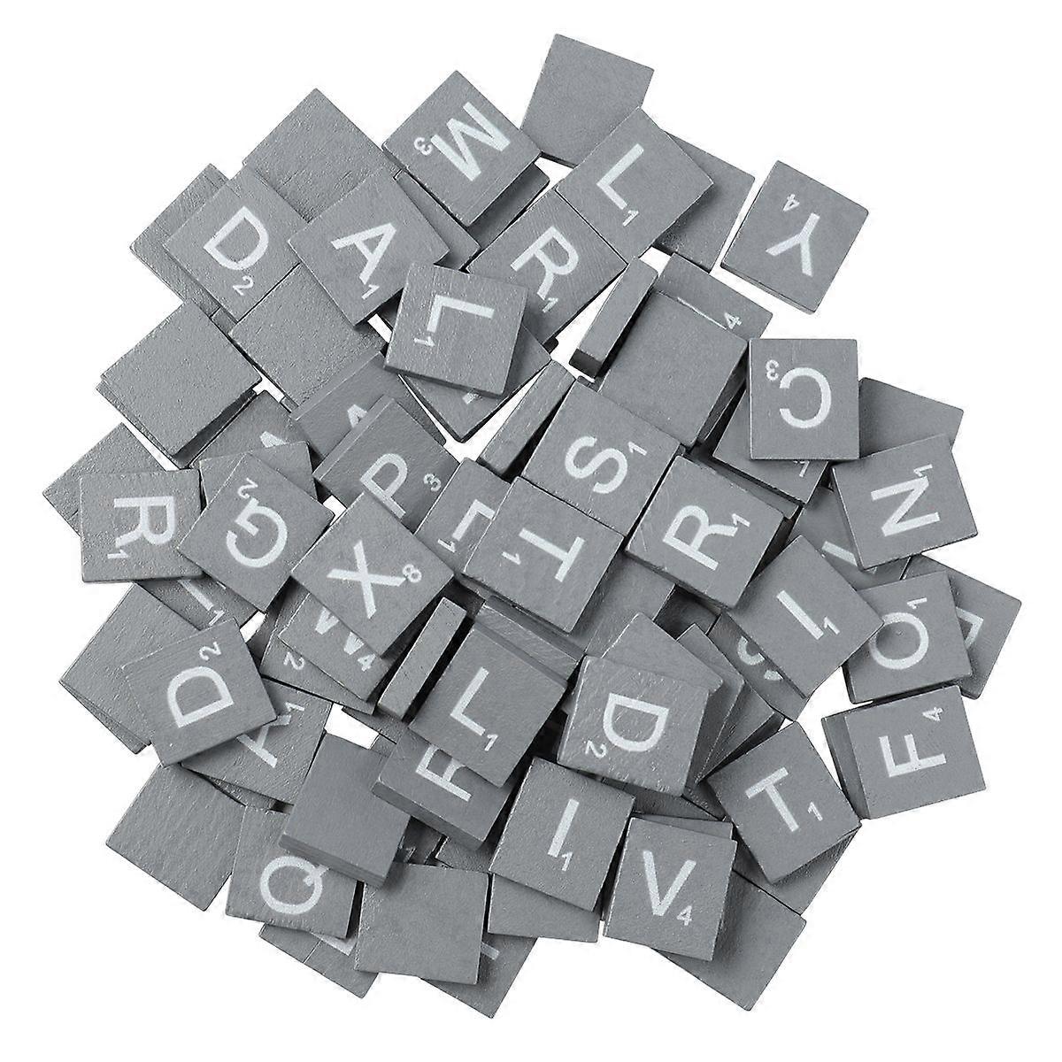 SUPVOX 100PCS Grey Natural Wood Chips DIY 26 English Letters Words Alphabet Puzzle Literacy Box Baby Intellectual Development Wooden Chips
