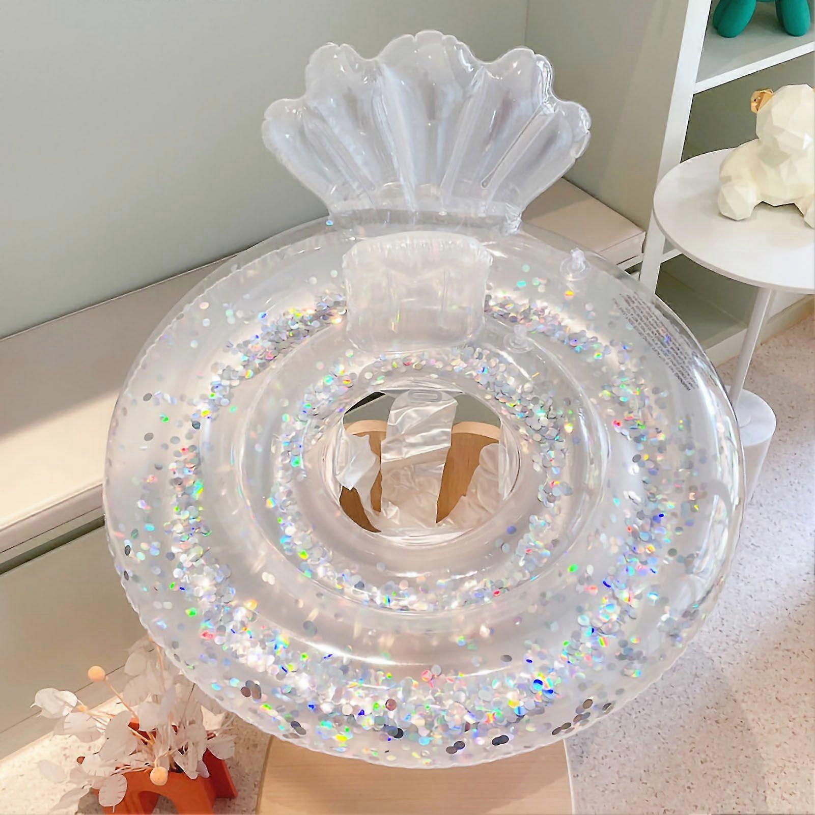 Swimming Ring Children Pool Floating Inflatable Swimming Circle Transparent Sequins Shell Thickened Pool Floaties Seated 7.5?17.5kg/16.5?38.6lb