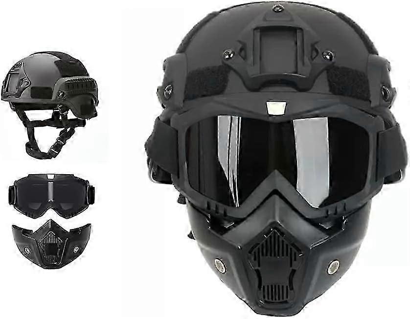 Tactical Mask and Fast Helmet,Protective Full Face AntiFog Clear Goggle mask Adjustable Strap One Size fits All - FKB