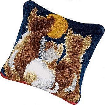 Tenlacum Lovely Animals Latch Hook Rug Making Kits for Beginners Embroidery Kit Pillowcase Cushion with Colorful Yarn Bundles Canvas Latch Hook Tool E