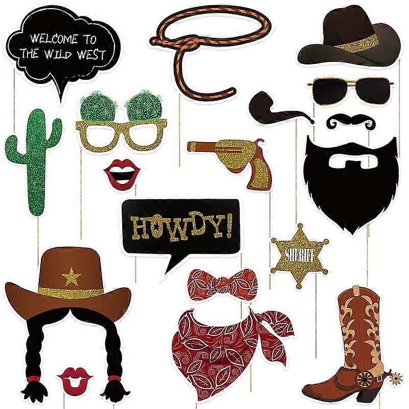 Tinksky 18pcs West Cowboy Photo Booth Accessory With Bamboo Sticks Funny Party Decoration Supplies