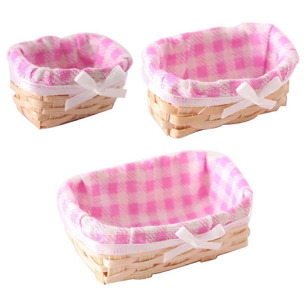 Tiny Basket Pink Mini Bamboo Basket for Decoration 3Pcs Desktop Set