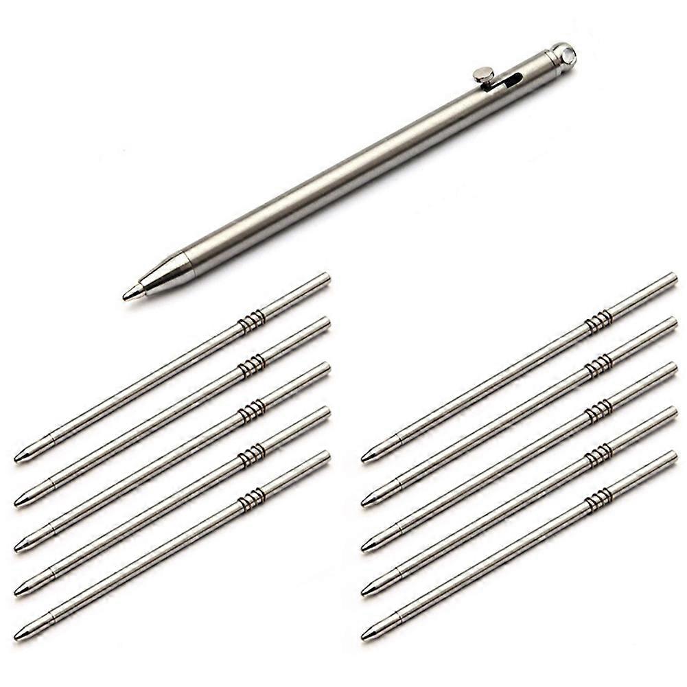 Material & Durability: Crafted from premium titanium, this mini bolt action pen offers exceptional durability and lightweight portability. Ideal for everyday carry, it combines functionality with a sleek, tactical design. Multi-functional Design: Not just for writing, this pen serves as a practical EDC gadget that can be easily attached to your keychain. Its compact size ensures it is always handy for quick notes or emergency use. Elegant & Practical Gift: With its smooth writing capability and stylish appearance, this titanium pen is not only a useful tool but also a great decorative item. It makes a perfect gift for friends, family, or colleagues who appreciate a blend of style and functionality in their gadgets. Color: Titanium Material: Titanium Alloy Package Contents: 1*Ballpoint Pen 10*Replacement refills