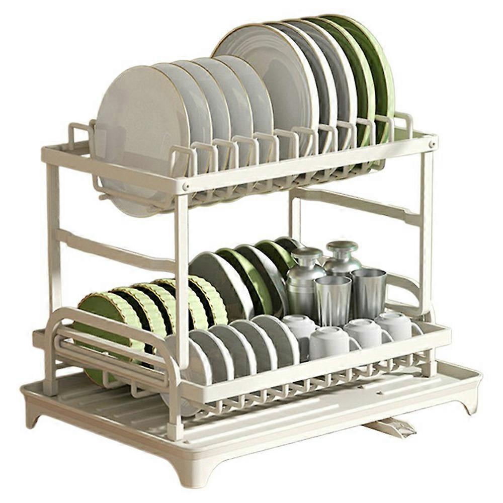 TKdaddy Kitchen Dish Drying Rack 2-Tier 40cm Width Multifunctional Shelf Drainer Kitchen Utensils Organizer White